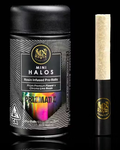 Prizmatic radiates depth and dimension — a harmony of two bold, Indica-dominant cultivars that exemplify Maven’s artistry. This fusion of Prizm’s lemon-diesel brilliance and Chroma’s velvety fruit-and-fuel rosin creates a smooth, slow-burning experience that unfolds in vivid layers. Bright top notes of citrus and pine give way to undertones of floral musk and dark fruit, finishing with a clean, resinous exhale that grounds the senses. The effect is immersive and deeply soothing — a serene spectrum of color, calm, and clarity.