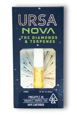 URSA NOVA is liquefied THC Diamonds blended with extra concentrated terpenes called NOVA terps. We create our NOVA terps using a proprietary extraction method that removes all lipids, leaving only the pure, clear, single-source terpenes. URSA NOVA is made using only full-sun fresh frozen flower from Humboldt.