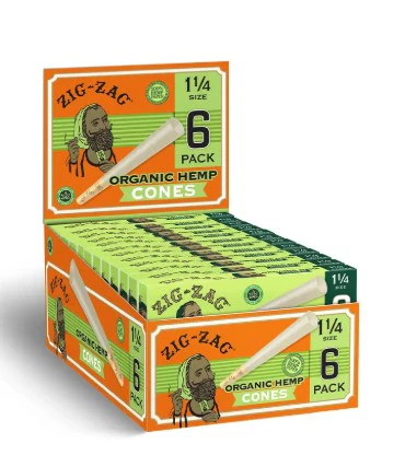 Zig Zag Organic Hemp 1 1/4" Cones 6pk ND